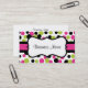 Bright pink, lime and black polka dots decorate this stylish business card. Customize the information on this business card to suit your needs, add or delete information, change the font style, font size, etc...The design is from original art. Use this business card for a spa, salon, small business, home decor, event planner, bakery, cake designer, gourmet food, chocolates, boutique, child care, preschool, daycare, candy, ice cream, etc...