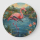 A vintage paradise with this retro-style pink flamingo, poised elegantly in a tranquil tropical lagoon.