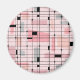 This Retro Pink Grid and Starbursts Round Magnet is where vintage style meets modern day. It features a light pink background with kitschy, off kilter squares and rectangles in dove grey and three shades of pink. The whimsical blocks of color are overlayed and worked into some of the grid intersections. There are also black rectangles with black vertical and horizontal lines forming a grid pattern. Black starburst designs and squares are placed sporadically throughout this mid century modern tapestry of color. This design features the most common pink colors found in vintage bathrooms. Grab your go-go boots and bell-bottoms and enjoy this throwback to the 1960s.