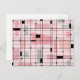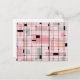 This Retro Pink Grid and Starbursts Postcard is where vintage style meets modern day. It features a light pink background with kitschy, off kilter squares and rectangles in dove gray and three shades of pink. The whimsical blocks of color are overlayed and worked into some of the grid intersections. There are also black rectangles with black vertical and horizontal lines forming a grid pattern. Black starburst designs and squares are placed sporadically throughout this mid century modern tapestry of color. This design features the most common pink colors found in vintage bathrooms. Grab your go-go boots and bell-bottoms and enjoy this throwback to the 1960s.