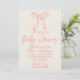 Retro Pink Hand Written Heart Bow Baby Girl Shower Invitation