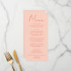 A colorful retro funky modern pink orange wedding dinner menu. Which features chic template design of boho vintage pink background on the front and pink on the back. With orange whimsical typography. Perfect and matching with the whole suite.