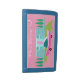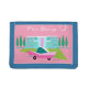 Between the pink background, turquoise mid century modern home, and the classic 1950s car, this design couldn’t be more Palm Springs if it said it in the clouds. Oh, wait, it does say it in the clouds! The blue and teal stone of the house is offset by the sputnik light fixtures framing the hot pink door. This kitschy, retro design welcomes you to live your most fabulous life.