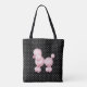 Black with small white polka dot tote bag, with graphics of a big pink furry looking poodle. Personalize the pink text for yourself or as a lovely gift idea for her.
