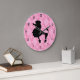 This fun, retro clock features an outline of a poodle in a black and pink color scheme.