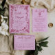 Retro Pink Raspberry Drawn Floral Garden Wedding Invitation