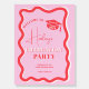 A cool bold name graduation welcome sign with Retro pink red curve squiggle wavy. All the text, names and background colors are customizable.