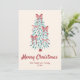 Retro Pink Red Hand Drawn Ribbons Tree Christmas Holiday Card