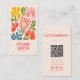 Retro Pink Red QR Code Groovy Floral Girly Boho Business Card