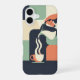 Barista pitcher pouring into a minimalist coffee cup against a retro background.