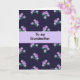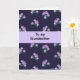 This card features a deep indigo-purple background filled with small pixel-style flowers and leaves, arranged like a gentle garden pattern that feels calm and affectionate ❤️. The blossoms appear in soft lavender and pale violet, with emerald green foliage tucked between them, giving the scene a tender, cared-for look. The flowers are built from tiny square marks that still suggest curved petals, like a quiet nod of admiration in a simple design. A lighter lavender band runs horizontally across the center, creating a soft space that draws your eyes in. Centered within that band, the text reads “To my Grandmother” in a crisp pixel-like font, standing out clearly against the lighter strip. The message sits neatly in the middle while the floral clusters stay mostly above and below it, as if framing the words with a gentle embrace 🌼. The overall layout balances cool tones with delicate accents, and the scattered flowers keep the pattern from feeling too rigid. Along the edges, the lavender blooms and green leaves repeat in small clusters against the dark background.