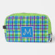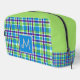 Retro Plaid in blue& lime - add monogram Dopp Kit