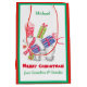 This colorful Holiday gift bag features a delightful vintage image of a happy polar bear carrying brightly wrapped Christmas gifts. In his mouth he has a small red heart ornament. The image is placed on a winter white background, and framed in bright holiday green and the sides of the bag are bright red. Your child's name or other custom text is in green at the top, and you may also customize the bottom message. Both sides of the bag have the same image. Cute, festive, and unique! For hundreds of vintage and contemporary Christmas images on a variety of products, check out the "Christmas" section in our store.