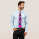 I bought this tie for a cosplay of Haruhi Fujioka for Halloween and anime conventions. It feels very nice and silky. It's my first tie ever, and I'm a pretty big fan since I always wanted a tie. It was longer than I expected it to be (quite a plus), but the purple stripe was also thinner than I expected it to be (a slight bit of a downer, but I don't mind too much). I had never used Zazzle before, but I am very impressed with the shipping time. I was looking for places to get a tie like this so last minute since the ties like this on Amazon were incompatible with Prime. Thus, I ended up here. I paid for express shipping, expected delivery October 30-31, and it arrived in the morning on the 30th. Very impressed. I might just use Zazzle again. The print job was okay. The colors were perfect, but as you can see in the pictures, the stripe was a little off-center, and there was a kink in the stripe around where it transitions from the wide end to the thin end. It should work perfectly for my cosplay, but it was a little too carelessly print to be a very professional tie.