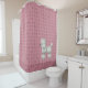 Add a retro girly touch to your bathroom, with this pink and black polka dot shower curtain, with graphics of a fluffy white poodle. Matching bath products are available.