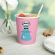 Fun retro paper party cup design features women's outfit with blue skirt and poodle on pink background. Customizable text to personalize for birthday or other events