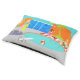 LOVE, love, LOVE this doggy pillow/bed. I purchased this dog bed a few years ago, in a different design, so I know it is a quality dog bed. The cover zips off for easy laundering and it doesn't shrink or pill after multiple machine washings. I use it at the end of the chaise section of my sofa as a bed for my dog and to help keep the sofa clean where she lays. I uploaded this photo design with her name and a picture of her sleeping on another pillow on our bed, with waves added in because I just know she's dreaming of being on the beach. When I received this new one, I replaced the old one on the sofa and Sara immediately laid down on it and knew it was for her. If you have a larger dog (Sara is about 25lbs) you'll want to order the larger size. Zazzle's printing and colors are always perfect. I'm a photographer, and I know how I expect the colors to come out, and they always do with Zazzle.