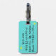 Come on in! The water is fine! This customizable Retro Pool Party Luggage Tag features a vibrant, cartoon drawing of a fun and sophisticated pool party. The mid century modern design centers around a round swimming pool on a large, gray, concrete patio. The pool is filled with turquoise water. Orange brickwork surrounds the pool and there is a white, plank diving board all ready for an adventurous soul. A red and white beach ball is floating in the water. On the opposite side of the pool, two party-goers are dangling their feet in the water, while resting on red and white striped beach towels. The woman with black hair is wearing a pink, one-piece swimsuit. Beside her is a tropical drink in a coconut with a little umbrella and a green straw. The blond man is wearing bright, green trunks. He is kicked backed with his hands behind his head. To the left of the pool, is a distinguished man with white hair and jade swim trunks holding a drink in a coconut shell. We know he's distinguished because he's a man with white hair! He is talking to a woman with blonde hair and an hourglass figure wearing a turquoise swimsuit. Slung across her arm is a yellow beach towel> Behind this scene is the green silhouette of a palm tree and a futuristic, orange, brick house. Through the large, floor to ceiling, blue glass windows, you can see the silhouette of a television, chair, ottoman, and starburst clock. The sky behind the house is a cloudless turquoise with a round, yellow sun. The opposite side of the tag features a turquoise background and plenty of room for customizing with your contact information.