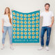 Retro Pop Flowers Pattern Turquoise Personalized Fleece Blanket