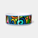 Create a custom made ceramic pet bowl for your cat or dog. Retro Psychedelic 60s Pattern Fun & Colorful Personalized Dog or Cat Pet Bowl. Give your "best friend" a customized food and water bowl or great as a gift for another animal lover. Pet accessories can add a decorative touch to any room. Choose a small or large size bowl.