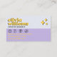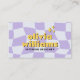 A Vintage retro boho chic purple and blue checkered business card. As you see it features a handmade psychedelic groovy boho abstract purple checkered pattern with a yellow groovy font. It has nostalgic seventies and sixties vibes and colors and groovy fonts. With customizable name and profession and hand drawn social mediaicons . That you can change by clicking on the personalize button. So Grab it and make you business unique and catchy.