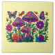 Retro Psychedelic Flowers & Mushrooms Ceramic Tile