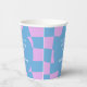 Retro Periwinkle Checkerboard Cute Custom Couples Bridal Shower Paper Cups