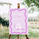 Retro purple lavender curve squiggle wavy wedding welcome sign. All the text, names and background colors are customizable,