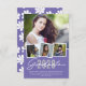Modern Retro Lavender Purple Floral Graduation Photo Collage Announcement featuring elegant script and modern text and sweet modern flowers on the back, with space for 4 photos to announce your graduate's big news! If you need assistance with the design or matching products, please contact us at katescreationszazzle@gmail.com.