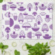 This design was influenced by a bowl I had growing up. The towel features a pattern of various stylized mushrooms in purple.