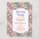 Retro Purple Pink Floral Groovy 40th Birthday Invitation