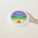 Modern colorful personalised frisbee with retro style sunset and palm trees art.