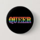 This retro gay pride image has the word "queer" in rainbow lettering with a worn texture.