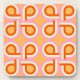 This vibrant digital artwork features a striking retro-inspired pattern composed of stylized letterforms in a repeated layout. The design showcases bold orange shapes with curved edges, accentuated by layered outlines in soft pink and cream hues. Set against a warm orange background, the overall aesthetic radiates a nostalgic vibe reminiscent of mid-century design, making it an eye-catching element for textiles, wallpapers, or contemporary graphic projects.