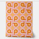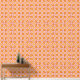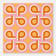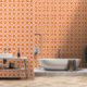 This vibrant digital artwork features a striking retro-inspired pattern composed of stylized letterforms in a repeated layout. The design showcases bold orange shapes with curved edges, accentuated by layered outlines in soft pink and cream hues. Set against a warm orange background, the overall aesthetic radiates a nostalgic vibe reminiscent of mid-century design, making it an eye-catching element for textiles, wallpapers, or contemporary graphic projects.