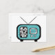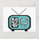 Radio reminiscent of the fifties but with wild patterns. Turquoise and white and black. Antenna on top.