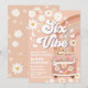 Celebrate your childs special day with this retro rainbow birthday invitation featuring a groovy 1960s-inspired design. The pastel rainbow background is decorated with daisies, stars, butterflies, and a peace-sign van, creating a fun vintage vibe. Perfect for a 6th birthday party, this playful invitation sets the tone for peace, love, and joy. Customize with your party details to make it uniquely yours and delight guests with a nostalgic yet modern design.