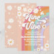 Celebrate in groovy style with this retro rainbow birthday invitation featuring pastel colors, peace signs, daisies, butterflies, and smiley faces. Perfect for kids parties, this vibrant design blends nostalgic hippie vibes with modern charm to create a keepsake guests will love. Customize with your childs name, party details, and RSVP information for a fun, personalized touch. Ideal for girls birthdays, this colorful invitation sets the tone for peace, love, and unforgettable memories.