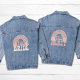 Bring fun, flair, and retro vibes to your celebration with this Retro Rainbow Bachelorette Party Denim Jacket! Featuring a groovy pastel rainbow design with daisy flowers and bold “The Party” lettering, this jacket is the perfect mix of vintage charm and modern style. Ideal for the bride's besties, this custom jean jacket makes the ultimate outfit statement for bachelorette parties, girls’ weekends, and destination celebrations. Pair it with your favorite boots or dresses for an effortlessly cool vibe that’s as fun and unforgettable as the weekend itself. A coordinating "The Bride" jacket is available for the bride.