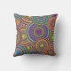 Throw Pillow / Cushion with a groovy retro circles pattern in all the colours of the rainbow.