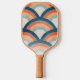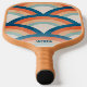 Retro rainbow pickleball paddle in orange and blue colors. Double-sided and personalized with a name or any custom text on one side with a cool and trendy font.