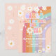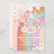 Celebrate your little ones special day with this retro rainbow and daisy birthday invitation! Featuring pastel arches in pink, orange, green, and purple, playful daisies, stars, hearts, and lightning bolts, this cheerful design radiates peace, love, and fun. Perfect for a groovy first birthday party, this customizable invite sets the tone for a vibrant celebration. Personalize with your party details and delight guests with a whimsical, eye-catching design thats both nostalgic and modern.