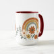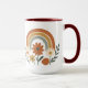 Brighten your mornings with this ceramic mug featuring a whimsical rainbow in earthy tones surrounded by cheerful flowers and leaves. With its retro-inspired design and nature motifs, this mug is perfect for coffee, tea, or hot chocolate. Stylish and uplifting, it makes a thoughtful gift and adds joy, color, and vintage charm to your daily routine.