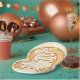 Four Ever Groovy! Retro inspired 4th birthday plates with 70's style fonts and colors, rainbow, and daisies in fall colors. brown, tan and orange colors.
