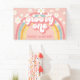 Groovy One! Retro inspired 1st birthday banner with 70's style fonts and colors, rainbow, and daisies in pink