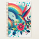 Bright and fun retro rainbows with colorful hummingbird with big wings and lots of playful flowers and shapes in the background. A stylish planner to write in.