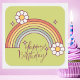 Retro Rainbow Modern Happy Birthday Square Sticker