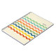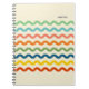 This budget friendly notebook features a retro trendy take on stripes with a ric rac wave in weathered tones of red, green, orange, blue, and yellow on an aged white or charcoal gray background. One line of editable text makes for easy customization with a name, event or subject.