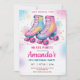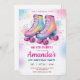 Get ready to roll into fun! You're invited to a skate party to celebrate Amanda's 4th birthday. This vibrant and fun invitation features a pair of colorful, retro-style roller skates with a dreamy pastel gradient, set against a background of festive confetti. It's the perfect way to get your guests excited to lace up their skates for a groovy celebration. All the party details are fully customizable for a wheelie good time!
