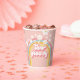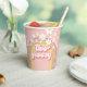 Two Groovy! Retro inspired 2nd birthday paper cups with 70's style fonts and colors, rainbow, and daisies in pink